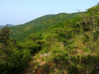 | 下降点手前から見る雨生山と湖西連峰 | 新城方面下降点 | 下降の途中金山山頂を望む |