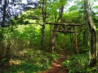 | 面ノ木第三園地 | 新緑が眩しい石の広場からの道と合流点 | 天狗棚展望台下の鳥居 |