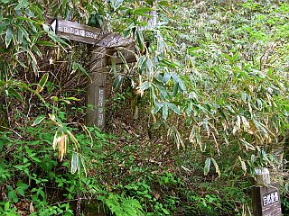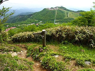 | 山行記 | ●天狗棚から下山すると、丁度昼頃だったので、茶臼山高原へ行って何か食べ、ついでに茶臼山も登っていこうと思い、茶臼山高原道路で茶臼山高原へ向かう。丁度芝桜まつりの最中で、駐車場も有料だ。しかし、どうしようかと迷ている間もなく駐車場待ちの車の中に挟まれ、否応なく有料駐車場に入ることになってしまった。 ●案内された第一駐車場に車をとめ、レストランで食事をしてから出発する。第一駐車場なので、登山口のある第四駐車場までスキー場のゲレンデを登っていく。平日にもかかわらず観光客も多く、家族連れやカップルが大勢歩いていた。5分程登ると第四駐車場に着く。 ●駐車待ちの車の間から登山口に入り、緩やかに登っていく。新緑が眩しい草原の中に、植栽されたのかわからないが、オオモミジやタムシバなどの木がポツンポツンと立っている。しだいに斜度は増してくるが、それを登りきると、チチブドウダンが咲く自由の広場という平坦地に出る。 ●広場から樹林帯に入り本格的な山道となるが、ここまでの人工的な景観から、一気に自然度は増す。ミヤマハコベやクルマムグラ、ホウチャクソウなど、いろいろな花が咲いている中をジグザグに登る。その後平坦な道を少し歩くが、森の広場からの道が右から合流すると木の階段の急坂へとかわる。 ●急なジグザグ道が一段落したところが稜線で、展望も開け、芝桜まつりで賑わう萩太郎山や茶臼山高原が眼下に広がる。萩太郎山の芝桜は、まつりの最後の週ということもあり、期待していたよりも咲いておらず残念だった。稜線からの緩やかな道は、二等三角点や展望台のある茶臼山山頂まで導いてくれる。 ●山頂の展望台に登ってみるが、この日は霞が多く、遠くの山々を望むことはできなかった。その先にある長野県側の鉄製の展望台にも登ってみるが、大川入山や蛇峠山までが精々で、その隣の恵那山すら確認することができなかった。帰りは来た道を戻り、まつりで賑わう第一駐車場周辺の露店などを見て歩いた後帰路に着いた。 |