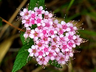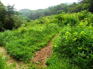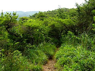 | 山行記 | ●ササユリが見頃を迎えているのではないかと、比丘尼へ行ってみることにした。比丘尼駐車場には、早朝にも拘らず既に3台の車が置いてあり、いつもと違った置き方なので、それに合わせて駐車し、歩き始める。 ●歩き始めの斜面は、予想した通り、下の畑までいたるところでササユリが咲いている。シライトソウも終りかけだが、よく咲いていた。 ●東屋を過ぎ、比丘尼城址への急坂を登り、いつものように愛の鐘を一突きし、おすすめの小径を離れて金山へ向かう。樹林の中では、先回咲きかけていたシソバタツナミも、いつの間にか終りかけ、イナモリソウが少しずつ咲き始めていた。 ●林道出合から、樹林帯の中の薄暗いジグザグの急坂を登り金山山頂に立つ。ここからは快適な稜線歩きかと思えば、雨のおかげでよく育ったササが道を塞ぎ、それも昨日までの雨で露を多く含んでいるので、ズボンはしだいに不快な程濡れてくる。 ●何とか蛇紋岩地帯の裸地に着いてやっと一息。しかし、新城方面への分岐を過ぎ、雨生山への登りにかかると、再びササの露が襲ってくる。この辺りでは、何組かの登山者に出合ったが、まだササの露は多く残っていたようだ。 ●雨生山手前の展望のいいピークから反射板方面に下り、新城方面への下降点からの道と合流し林道へ下りる。濡れた蛇紋岩はとても滑りやすいので気を付けなければならない。 ●林道に下りるとそれををしばらく歩くが、ウツボグサやウメモドキ、イヌツゲなどが咲き、気の早いオカトラノオが1本だけ咲いていた。その先の76番鉄塔の標識から右の山道に入ると、再びおすすめの小径に合流する。この辺りもササユリが多い所だ。 ●おすすめの小径に入ると、蛇紋岩地帯の裸地を2か所通り、その先のロープの張った滑りやすい急坂を下ればおすすめの小径の出口で、後はすっかり田植の終った田園地帯の未舗装道路を歩いて比丘尼駐車場まで戻った。 |