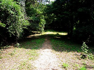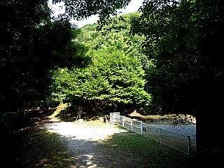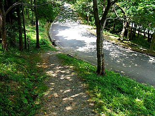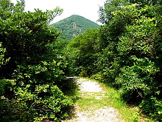| 展望台のある扇原から滝頭公園方面へ | クチナシ坂から舗装道へ | 滝頭公園の入口から見る滝頭山 |