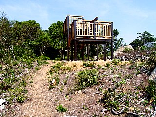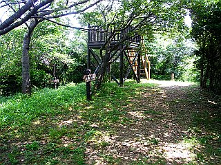 | 展望台のある衣笠山山頂 | 展望台から蔵王山と三河湾を見る山頂 | 桟敷岩新道、直登コース合流点 |