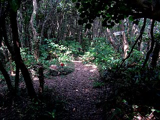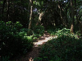 | 山行記 | ●土日と梅雨の晴れ間で晴天が続いたが、あまりにも蒸し暑く、土曜は家を出ることができなかった。日曜になって、土日晴れだったのに全く山へ行かなかったというのもどうかと思い出かけることにした。前日飲み過ぎたのか、朝起きるのが遅くなってしまい、早朝の涼しいうちにと思っていたのが、しっかりと太陽の上がった8時過ぎのスタートとなってしまった。 ●いつもの衣笠自然歩道駐車場に車を置くと、樹木が刈られてさっぱりした衣笠自然歩道入口から小衣笠山への緩やかな道を登っていく。木陰だが、気温も湿度も高く、汗が滴り落ちる。花も暑さのためか咲いているのは、咲いているのかいないのかわからないサジガンクビソウぐらいのものだ。 ●未舗装林道の終点から松尾岩コースを登る。松尾岩や南の覗きを過ぎると傾斜が急になり、頑張って150段程の木の階段を登りきると傾斜は緩くなる。殿様新道からの道と合流すると間もなく、展望台の工事ですっかり木が伐採され明るくなった衣笠山の山頂に到着する。 ●よく晴れてはいるが、展望は今一つ、第一暑くてたまらないので展望台に上り景色を眺めると、即下山にかかる。下山はいつもの桟敷岩コース。山頂から緩やかに下っていくと桟敷岩に下に出るが、この日も桟敷岩に登らずにそのまま下ることにした。桟敷岩から急な斜面を下ると、道は山腹を緩やかに下るようになり、やがて直登コースと合流し、道は広く明るくなる。 ●少し歩くとジョギングコースと合流し、更に広く歩き易い道になる。しかし、ここまで来てもこれといった花が咲いていない。結局仁崎峠までで見た花はサジガンクビソウとハエドクソウだけだった。 ●仁崎峠からは、暑いので迷ったが、滝頭山を目指すことにした。急な階段を登り、アップダウンを繰り返すと、山頂への急な登りが始まる。傾斜はしだいに急になり、最後は、張られたロープにつかまりながらでなければずり落ちそうな、落ち葉で滑りやすい急登だ。この急登を登りきると滝頭山山頂で、樹木の間から衣笠山の展望台まで確認することができる。 ●滝頭山山頂からは長興寺方面へ快適な道が続く。表示がなければ通り過ぎてしまいそうな中西山山頂を過ぎると間もなく藤尾山方面への分岐が現れるので、長興寺へのコースと分かれて左手の坂道を一気に下る。一旦傾斜の緩む西の覗きからロープの張られた急な斜面を下ると荒れた林道に出る。 ●林道を渡り、反対側の法面を登る。以降は再び樹林の中に入り、細い道を蛇行しながら進むと藤尾山への分岐となる三ツ俣に着く。三ツ俣から少し下ると、緩やかなアップダウンを繰り返し、迷子尾根の頭を過ぎ、緩やかに少し登ったところが不動岳の山頂で、ここから道が一気に広くなる。 ●不動岳からはやや急に下り、展望のいい露岩の小ピークを過ぎて、木の階段が整備された道を登れば赤松山に着く。振り返ると恐竜の岩場を擁す滝頭山がひと際高く端正に見える。 ●赤坂山から緩く下ると秋芳立という露岩地帯を過ぎ、展望台のある扇平という広場に出るので、ここから稲荷山方面へ続く稜線から離れて、クチナシ坂を滝頭公園方面へ下る。大きなジグザグを切って下るこの道沿いも花の多い所だが、この日は上部でアキノタムラソウが咲くのみだった。 ●滝頭公園横の舗装道に出ると、後は滝頭公園入口前を通って、歩道の整備された舗装道を、車を置いた衣笠自然歩道駐車場まで戻った。この日はどうやら丁度花のない時季だったようで、花以外ではヤブキリ(キリギリス)とホタルガがやたら目立っていた。 |