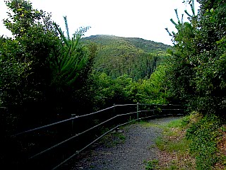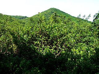 | 山行記 | ●この暑い夏の最中、花もあまりないのは承知しているが、前回見たウバユリとコクランが気になってここを訪れてみた。前回、ウバユリはまだ葉が目立ち始めた程度だったのでまだ早いかもしれないが、コクランは既に咲き始めており、今回はより多く花が見られるのではないかと思った。 ●いつもの衣笠自然歩道入口の駐車場に車を停め、小衣笠の道を登り始める。この日は気持ちよく晴れていたが、風がないので、特に湿気の抜けない樹林帯の登りは応える。小衣笠までのジグザグの登りで、すっかり汗だくになってしまった。 ●小衣笠を登りきると、ジョギングコースと合流し、間もなく防火水槽のある未舗装林道の終点に着く。夏も深まり、春には手前の樹間から衣笠山が見えていたが、今は緑濃くなりあまりよく見えない。 ●ここからいつものように松尾尾根コースに入る。このコースも樹林の中で蒸し暑い。おまけに急登なので汗が滴り落ちる。松尾岩とそのすぐ上の南の覗きを通り過ぎると、道はしだいに急になり、最後は140段の急な木の階段を登る。木の階段は徐々に緩やかになり、階段が終るとすぐに殿様新道と合流し、衣笠山山頂に到着する。 ●展望台に上ってみるが、日差しが暑くてたまらないのですぐに下り、山頂を後にして桟敷岩新道を下りる。桟敷岩の直下には奇岩回廊があり、そこにはコクラン平というコクランの咲くところがあるので、久しぶりにここも回ってみる。コクラン平のコクランはあまり咲いておらず少しがっかりした。 ●桟敷岩新道は、最初ロープの張られた急坂を下るが、しだいに山腹を歩くようになる。突然周囲が開けたところに出るが、ここが直登コースとの合流点で、ここから道は一気に広くなり、その先でジョギングコースと合流すると、快適な道が仁崎峠の手前まで続く。もう一つの目的であるウバユリはまだ蕾の状態で、開花までにはまだ数週間はかかりそうだ。 ●仁崎峠からは、舗装道路を挟んだ反対側の木の階段を登って滝頭山を目指す。階段を登り切り、数回アップダウンを繰り返すと滝頭不動への分岐が現れ、ここから滝頭山への急な登りが始まる。最後のロープの張られた急坂を登ると、木の切り払われた滝頭山山頂直下に出て、そこから一息で滝頭山山頂に着く。 ●滝頭山山頂からは、なだらかな道を長興寺方面に進む。中西山山頂を経て、藤尾山方面への分岐から荒れた林道の方へ一気に下る。ここのコクランも今一つ。元々目立つ花ではないが、あまりい状態のものはなかった。 ●荒れた林道を渡り、再び平坦な樹林の中の道を行く。少し緩やかに登って、藤尾山の分岐となる三ツ俣、一旦下り、またまた平坦な道を行く。再び緩やかに登り着いた所が、不動橋方面からの道と合流する不動岳の山頂だ。ここから道は広くなり、快適な稜線歩きが始まる。 ●不動岳から急な斜面を下り、露岩のピークを越え、木の階段を登れば赤松山。振り返ると恐竜の背の露岩が荒々しい滝頭山がひと際高く見える。赤松山から少し下ると、丸い木のベンチのある広場、その先の秋芳立という岩場を過ぎれば展望台のある扇原だ。 ●扇原から左手戻る方向に下る道がクチナシ坂。ジグザグによく整備された道を下ると滝頭公園横の舗装道路に出る。ここからは滝頭公園の反対側の歩道をゆっくり歩いて、車を置いた衣笠自然歩道入口の駐車場を目指した。 |