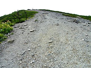 | 蝶ヶ岳山頂まで後僅か | 蝶ヶ岳山頂 | 蝶ヶ岳山頂から蝶ヶ岳ヒュッテ方面をを見る |