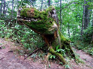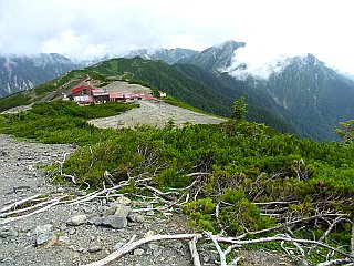 | 槍・穂高連峰は雲で見えない | 蝶ヶ岳ヒュッテ | 恐竜の木 |