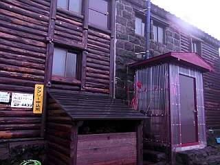 | 雨が降り始めたまだ薄暗い登山口 | 滝の小屋 | 湯の台方面分岐 |