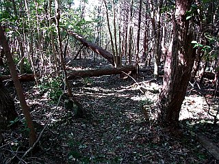 | 林道出合 | 金山山頂 | 県境稜線は倒木が道を塞ぎ歩き難い |