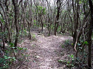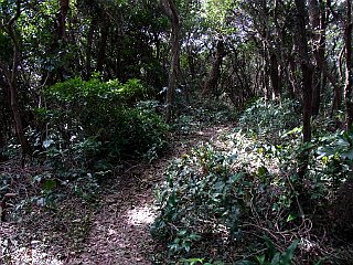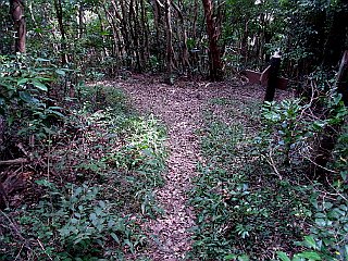 | 長興寺分岐 | 西の覗きから見た渥美半島南部の山々 | 日当たりのいい荒れた林道 |
