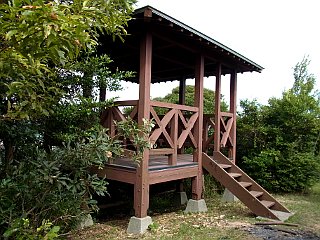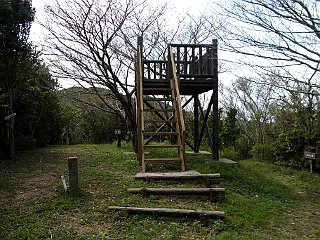 | 東屋と三角点のある稲荷山山頂 | 稲荷山山頂から「学習の森」へ進む | 舗装道から衣笠山を見る |