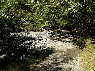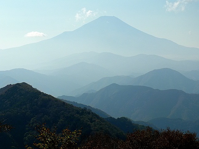 | 山行記 | ●鳥海山以来、遠くの山へ行っていなかったが、久々の遠出は丹沢の鍋割山。この日の天気予測は、快方にあるということだが、足柄SAまで来ても激しい雨が降っていた。おまけに、足柄SAの先では、車両火災のため通行止めに遇い、都夫良野トンネルの中で1所間以上足止めを食ってしまった。その後も渋滞があり、駐車地点の表丹沢県民の森駐車場に着いたときには、既に10時を回っていた。しかし、天候は急速に回復し、晴れ間も出てきた。この日の行程は短いことだし、気を取り直して出発することにした。 ●表丹沢県民の森駐車場から林道を歩き二股を目指す。2つのゲートを越え、アップダウンしながら車の通ることのできる林道を歩くと、登山指導所の建物が見え、やがて、バスツアーの登山客が休憩している二俣に到着する。 ●二俣からも林道を緩やかに登る。途中で、小屋へ運ぶペットボトルの水を幾つかザックに入れ、さらに進むと林道の終点に出る。ここからは、ミズヒ沢を渡り本格的な登山道になる。 ●植林の登山道には、既に終わりかけだが、マツカゼソウが咲き、ホトトギスやアキチョウジなども咲いていた。やがて自然林へと変わり、傾斜が増すと後沢乗越に着く。 ●後沢乗越からは、快適な尾根道を想像していたが、後沢乗越までの急坂に負けないくらいの急坂が続きがっかりする。しかし、天候もすっかり回復し、リンドウやトネアザミが咲く明るい尾根道は気持ちがいい。 ●山頂が近付くと木々も疎らになり、待望の富士山や檜洞丸なども見えてくる。やがて、傾斜が緩くなって来れば大きな広場になっている鍋割山の山頂に到着する。 ●山頂には多くの登山者が休憩しており、鍋割山荘名物の鍋焼きうどんを食べている人がたくさんいる。せっかくなので、こちらも鍋焼きうどんを注文し、大展望を眺めながらの食事をとることにした。 ●山頂に着いた時は雲の多かった富士山も、見る見る雲が取れ、外にも愛鷹山や箱根の山々、天城山などの山の展望に加え、相模湾や、遠くは伊豆大島まで確認することができた。 ●晴れ渡った山頂は気持ちがよく、過ごしやすいので、珍しく長い休憩となったが、いつまでもこうしているわけにもいかないので下山の支度をする。 ●下山は、来た道ではなく、小丸経由にする。小丸を経て大倉尾根に続く稜線の道は歩きやすく、アップダウンもそれほど苦にはならない。塔ノ岳や蛭ヶ岳へ続く丹沢の主稜線の眺めが素晴らしく、センブリやウメバチソウなどの花も咲いていた。 ●小丸直下で二俣への分岐が現れるが、ここでこの気持ちのいい稜線道と分かれるのが残念な気持さえする。しかし、この二俣への道も展望がよく、富士山や大山、相模湾などを見ながらジグザグの道を楽しく下る。 ●展望のいい道も、しだいに自然林へと変わり、それが植林へと変わると、道も歩き難くなり、傾斜の緩い所では道のはっきりしないところもあった。とにかくひたすら下るしかなく、二俣近くの分岐に着いた頃には、谷沿いは既に日が陰っていた。 |