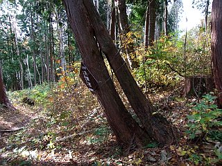 | 二合目の弘法清水上 | 最後の林道から本格的な山道が始まる | 巨大なシナノキ |