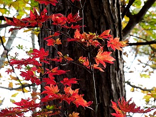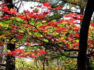 | 三合目の七曲り下 | 隣の飯綱山が見えた | 紅葉の様子 |