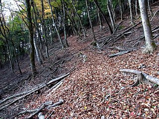 | 紅葉のいいところもある | 落ち葉が降り積もった斜面 | 赤石温泉付近から見た大西山 |