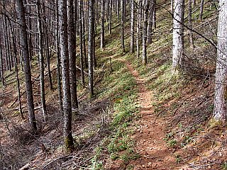 | つり天国の駐車場 | 大西山登山口 | 樹林の中のジグザグの登りが続く |