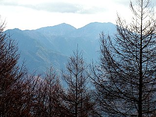 | 展望地から見る荒川三山 | 大西山山頂 | 樹間から望む中央アルプス |