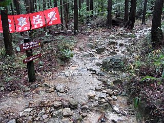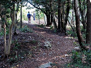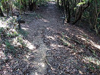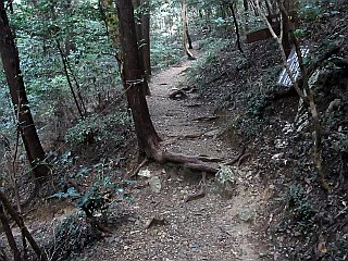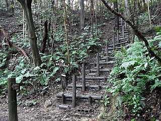 | 小広場になっている一服峠 | 急な階段を登ると稜線に出る | 弓張山脈主稜線に出る |