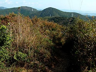 | 展望所から見る弓張山脈南部の稜線 | 施設が撤去され整地されたNHK中継所 | 送電線鉄塔の立つ座談山山頂 |