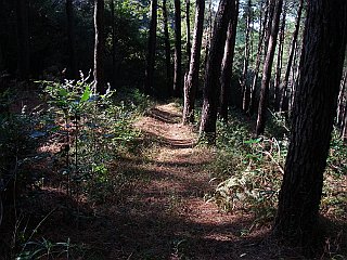 | 松の葉の落葉で気持ちがいい | 神石山遊歩道入口 | 振り返れば神石山が見える |