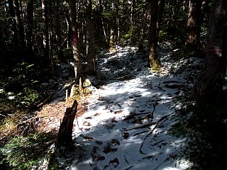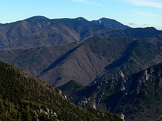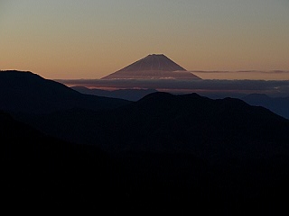 | 山行記 | ●小川山と言っても知っている人は少ないかもしれないが、金峰山から見える小川山のどっしりとした山容は、いつかは登ってみたいと思わせるものがある。日本百名山の金峰山や瑞垣山に近いため、あまり脚光を浴びていないようだが、信州百名山や山梨百名山に名を連ねる名山だ。また、麓の廻り目平は、近年ロッククライミングの練習場として人気が上がってきているらしい。 ●豊川を午前3時に出発し、中央自動車道を小淵沢ICで下り、八ヶ岳高原ラインを通りかかると、八ヶ岳がモルゲンロートに染まり美しかったので、車を停めて写真を撮った。外にも富士山や南アルプスがよく見え、早朝にもかかわらず数台の車が停まって写真を撮っていた。 ●登山口は、金峰山荘の先のキャンプ場の中だが、施設の営業も既に終了しているので、登山口横の駐車スペースまで入って車を停め、早速登り始める。 ●落ち葉の降り積もる急な登山道はほとんど標識がなく、木に付けられた赤いペイントやテープを頼りに急な坂道をひたすら登る。登るにしたがい木々の間の展望が開け、小川山下部の岩峰や金峰山を望むことができた。 ●やがて、険しい岩場に差しかかり、赤いペンキの矢印を頼りによじ登るようにして進むと、カモシカ登山道の唐沢の滝への分岐に着くが、ここでまだコースタイムの1/4かと思うと先が思いやられる。おまけに登山道に雪が見られるようになり、朝慌てていてアイゼンを忘れてきたことに気付くが、とにかく行けるところまで行こうと先に進む。 ●岩場はその後も続き、気が抜けないが、展望がよく、金峰山はますますせり上がり、五丈岩まで確認することができた。やがて、展望台と書かれた展望のいい岩場着く。 ●岩場からは一旦下り、シャクナゲの葉が覆う道を進む。弘法岩の岩峰を巻くと、道は傾斜も緩み歩きやすくなる。雪は登山道を軽く覆う程度で、先行者の踏み跡がはっきり見えるぐらいなので、心配したアイゼンの出番はなさそうだ。 ●このコースはあまり目標がないので、ガイドブックのコースタイムを目安にしてきて、時間的にはまだ2/3も来ていない時間だが、振り返れば金峰山があまり変わらない高さに見えるようになってきた。 ●まさかと思いながら歩いていると、八丁平への分岐に出た。分岐から緩やかな登りを少し登ると木柱の立つ狭い広場に出た。木柱を良く見てみると、それはおなじみの山梨百名山の木柱で、そこは小川山の山頂だった。 ●山頂は、下調べのとおり木々に囲まれ展望がないが、その先には展望のできる場所があり、やや木々の背丈は高いが、その上から南アルプスや中央アルプス、御岳、八ヶ岳などの展望が広がっていた。 ●久しぶりの晴天で展望を堪能した後、下山を始める。思っていたよりも時間が稼げたので、少し遠回りだが八丁平の方へ下りてみることにした。八丁平への道は、小さなアップダウンを繰り返しながら緩やかに下っていく。雪はやや多い所もあるが、ガイドブックに書かれていた倒木は、処理されて通りやすくなっていた。 ●途中、何箇所か展望のいい岩場があり、そこからは隣の金峰山や瑞牆山、甲武信ヶ岳、南アルプス、中央アルプス、御岳、八ヶ岳など、澄みきった大展望が広がっていた。 ●やがて、富士見平方面への分岐を過ぎ、廻り目平への下降点から砂流川に沿って下り始める。沢沿いの道はわかり難い箇所もあるが、目印を確認しながら慎重に下る。下部では沢を渡ったり沢の上を歩く箇所があるが、岩が全面凍ったところもあり、なかなか気が抜けない。 ●ようやく林道に出てほっとするが、ここからの林道歩きがまだまだ長い。廻り目平が近付くと、いろいろな岩場でロッククライミングの練習をしている人を見かけた。空は青空、岩峰と白樺が覆う山肌がとても美しかった。 ●帰りの中央自動車道からも、南アルプスや中央アルプス、八ヶ岳に加えて、北アルプスの槍穂高連峰までくっきりと見ることができた。今日一日だけで日本百名山を幾つ見ることができたのだろうか。 |