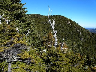 | 岩上から見る中央アルプス | 岩上から見る金峰山 | 倒木も処理され通りやすくなっている |