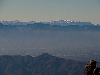 | 岩上から見る南アルプスと中央アルプスの峰々 | ||