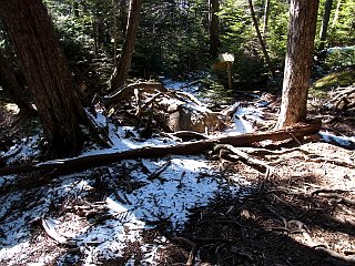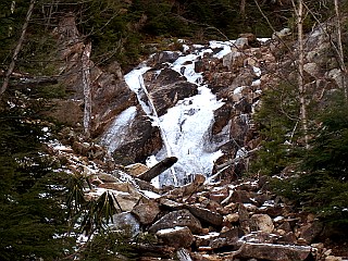 | 富士見平方面分岐 | 廻り目平方面下降点 | 滝も凍っている |