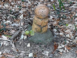 | あちこちに置かれている可愛い土の人形 | 探訪が開ける嵩山山頂 | 嵩山山頂から見る浜名湖と富士山 |