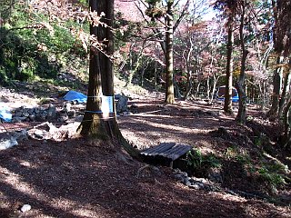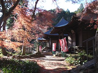 | 調査のためロープが張られた普門寺址 | 普門寺 | まだ紅葉が楽しめる |
