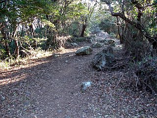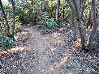 | 山行記 | ●いつも歩くコースでも、いろいろな分岐があり、今度一度歩いてみようと思うが、なかなか実際歩いてみることはない。それでも気になるコースを歩いてみようと、最近いろいろと歩いているが、今回もそれだ。前に、長興寺から藤尾山を経由して田原南部小学校へ下りるコースは歩いてみたが、まだ、百年桜新道や黒河池など、歩いたことがないコースがいろいろあるので。今回はそれを歩いてみることにした。 ●まずは黒河池近辺で駐車地点を探すが、いい場所がないようなので、池畔の道の傍らに車を置いて出発する。登山口はその道の延長線上の道が二又に分かれるところで、左の上っていく方の道を登る。緩やかな道をしばらく登ると、また道は分岐し、案内があるので、右に続く山道に入る。道は、やや傾斜を増し、さらに登ると木の階段が現れ、その上に東屋が設置されている。そこからは太平洋を望むことができる。 ●海方向に展望の開けた東屋から、再び樹林帯の山道に入り、さらに登っていくと百年桜新道への分岐に出るが、百年桜新道はまたの機会ということにして、今回は藤尾山へ向かう。しかし、分岐を過ぎ、田原南部小学校への道を併せると、呆気なく藤尾山の山頂に到着してしまう。 ●この日は快晴だが、遠くは霞んでいてよく見えず、藤尾山山頂からは、きらきら光る太平洋は見ることができたが、先日のように富士山は見ることはできなかった。藤尾山からは、直下の吊尾根の段で、蔵王山や本宮山などの眺めを楽しんだ後、一旦下って三ツ俣まで登り返す。 ●三ツ俣からはいつもの道だ。迷子尾根の頭、不動岳、赤松山と越えて扇原へと、アップダウンを繰り返し進む。やがて扇原に着くが、今回は黒河池に車が置いてあるので、滝頭公園方面には下らず、稲荷山方面へ進む。扇原からは、延々と続く急な階段を下る。階段が終わり、少し登ったところが庄十山で、また下ると三角点と展望台のある稲荷山に着く。 ●稲荷山から神社の方に下ると、地元の人たちが神社の新年の支度をしていた。ここからは、地図を頼りに黒河池を目指す。選んだ道は最短コースだったが、途中、道の舗装がなくなり、山道のようになったりたりして心配になったが、道は正しかったようで、思ったところに出ることができ、無事車を置いた黒河池畔に着くことができた。 |