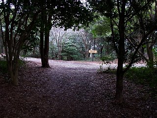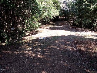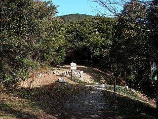 | 衣笠自然歩道小衣笠の道入口 | ジョギングコースと合流する | 林道終点と衣笠山 |