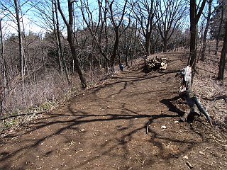 | 山行記 | ●2月に計画したこの山だが、その時は雨で中止になってしまったので、今回はそれに登ることにした。豊川から3時間半と意外と早く藤野駅に到着。満車ではないかと心配していた藤野駅周辺第一駐車場も空いていたので、予定どおりそこに車を停め歩き始めることにした。 ●舗装道を歩き、線路を渡ってトンネルへ入るが、車二台が擦れ違えない程狭いトンネルで、歩道はあるものの段差や縁石で仕切られているわけでもなく、加えて車の音も大きく聞こえるので怖い。 ●トンネルを抜けると、首都圏であることを忘れるようなのどかな風景に変わるが、さすがは首都圏、車の行き来は激しい。途中から段差のある歩道が現れるのでそれを歩いていくと陣馬山登山口バス停があり、その先が栃谷方面への分岐になる。分岐からすぐのところで、栃谷方面と一ノ尾根方面の分岐となるので、往きはまず一ノ尾根方面へ進む。 ●舗装された狭く急な道を、蛇行しながら登っていくと舗装は切れ、山道を歩くようになる。山道といってもよく歩かれた広い道で、さすがは登山者の多い首都圏の山だ。 ●このコースは全体的に緩やかで、3週間山へ行けなかった身体には優しい。途中で上沢井や和田に下りる道が分岐するが、相変わらず緩やかな道が続く。道端には、シュンランの葉を多く見かけるが、せいぜい蕾で、春の訪れが遅れていることを実感する。 ●最後は木の長い階段を登りきれば陣馬山山頂で、3件の茶屋が建っているが、一軒はこの日は営業していないようだ。山頂は、首都圏の山らしく、多くの登山者で賑わっていた。 ●こちらも富士見茶屋のベンチでうどんを注文し休憩することにした。山頂は風があり寒かったので暖かいうどんは有難い。山頂に着いた時には雲で覆われていた富士山も、しだいに雲が取れ、隣の生藤山、丹沢、三ッ峠山、大岳山などの山々や、開業を目前に控えた東京スカイツリーも見ることができた。 ●下山は栃谷尾根を下りることにした。影信山へ続く稜線方面へ少し進むと分岐があるので、それを右に進む。一ノ尾根よりも距離が短い分急な下り坂が続く。途中開けた展望地があるが、そこからも富士山を見ることができた。 ●やがて、祠が現れ、さらに進むと茶畑に出る。この辺りは既に人里で、細い道がジグザグに続く。道は各所で分岐するが、道標がしっかりと案内してくれるので安心だ。陣谷温泉に続く車道を分けしばらく歩けば分岐点で、陣馬山登山口に着く。ここから駐車場までも少し歩くがあと一息だ。 |