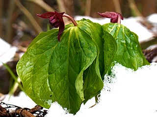 | ショウジョウバカマ | 雪の中で咲くエンレイソウ | ユキツバキ |