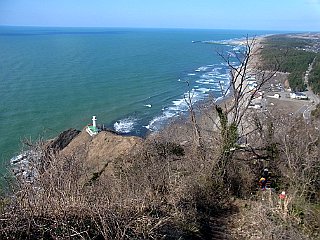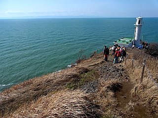 | 振り返る角田山の山頂部 | 角田岬灯台と角田浜 | 角田岬灯台と遠くに見える佐渡島 |
