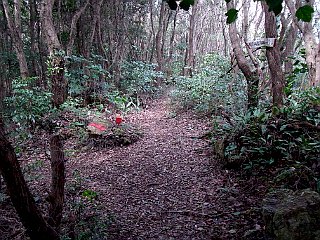| 西の覗きから見た渥美半島西部方面 | 荒れた林道から再び山道へ | 三ツ俣 |