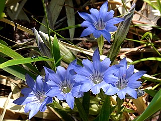 | 山行記 | ●約2か月前に訪れた時には、春の花はまだまだだったこのコースも、そろそろ花でいっぱいになっているだろうと思い、久々に訪れてみた。比丘尼駐車場には、休日の昼頃というのに車が一台も停まっていない。桜の季節が終わったからなのだろうか。 ●とにかく歩き始めるが、5月上旬とはいえ、雨後の晴れ間なのでじめじめして暑い。汗を滴らせながら歩いていくと、いきなりキンランがお出迎え。今年は花が遅いという頭があったので、期待もしていなかった花に出合えてテンションが上がる。さらに、ハルリンドウやツクバネウツギの花や、シライトソウ、ササユリの蕾などが次々と現れ、ここも既に春爛漫である。 ●金山から県境稜線を歩くと、コバノガマズミやヤマウグイスカグラなどが咲いていて、歩いていて楽しい。雨生山が近付くと展望が開け、三ケ日ジャンクション辺りの交通渋滞の様子が見える。やはり高速道路の渋滞がひどいゴールデンウィークには遠乗りを避け、近場の山を楽しんだ方がいいのかもしれない。 ●この日も、いつものように雨生山まで行って、反射板のところから、足の踏み場もないくらいハルリンドウの咲く道を下り、比丘尼の「おすすめの小径」を通って、車を置いた比丘尼の駐車場まで戻った。 ●この日一番嬉しかったのは、ここ数年見かけることがなく、てっきり絶えてしまったものだと思っていたエビネの蕾を発見したことで、これからも毎年この場所で出会えることを祈るばかりだ。 |