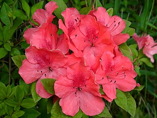 | 山行記 | ●いつも一人で歩くこの山も、ササユリを見に行こうと誘ってみたところ、13人も集まり、近年にない大人数の山行となった。現地集合も併せ、比丘尼駐車場に停まる4台の車は全てこちらのグループのものだ。 ●とりあえず出発すると、早速ササユリが出迎えてくれた。少し伸びたササの間から、朝日を透過する薄桃色の大きな花が顔を出す光景は素晴らしい。シライトソウもまだまだたくさん残っている。 ●天気もよく、本宮山や吉祥山がくっきり見える東屋から比丘尼城址への急坂を登る。木々の緑も訪れる度に濃くなり、春から夏への季節の移り変わりをを実感する。 ●愛の鐘をみんなで鳴らし、おすすめの小径を外れて金山方面へ進む。原生林下のシソバタツナミは花を落としたばかり、期待したイナモリソウも既に遅かったようだ。 ●林道からジグザグの急坂を登ると金山山頂。ここからは県境稜線を歩くが、昨日の雨粒が残るササが登山道を覆い、先頭を歩く私のズボンはずぶ濡れ、おまけにクモの巣払いまで仰せつかり、やはりこういう日の先頭は辛い。 ●裸地に出ると、この辺りに多い赤みの強いヤマツツジや真っ白なテリハノイバラが目立ち、さすがに今まで勢力を伸ばしてきたニガナはそろそろ終わりなのか、パラパラとしか咲いていない。 ●新城方面への下降点を過ぎ、展望のいいピークを越えて雨生山に向かう。ナルコユリやシモツケも咲き始めここでも夏の花のシーズンが始まっているようだ。 ●雨生山山頂はすっかりササが伸びてしまい、総勢14人が休憩する場所がないので、展望のいいピークまで戻ってから小休止。そこからは、いつものとおり反射板経由で新城方面の下山道を下り、林道から再びおすすめの小径に入り下山した。 |