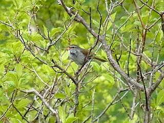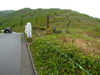 | 富士見峠第一駐車場と浅間山 | 「シラネアオイ群生地」の看板がある登山口 | ウグイスが自慢の鳴声を聞かせてくれる |