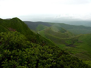| 山行記 | ●コマクサの群落が見たいということで、豊川から11時間かけて遥々秋田まで出かけて来た。時間が早かったので、マイカー規制中だが、八合目の駐車場まで車で上がることができた。 ●まだ梅雨明け前なので雨は覚悟の上だったが、駐車場に着いた時にはまだ雨は降っていなかった。いつ雨が降り出してもおかしくないような天気なので早速支度をして出発する。 ●ハクサンチドリやモミジカラマツなどの咲く緩やかな道を歩くと、山肌が露出した火山らしい景観が現れ、その中を進む道との分岐となっているが、そちらは道が崩壊している個所があるということなので、そのまま進む。 ●緩やかな道は、主峰の男女岳を巻くように緩やかに上っていく。マルバシモツケやウラジロヨウラクなど花は豊富だ。やがて展望が開けると片倉展望台。この辺りから展望の開けた道を歩くことになる。 ●進むに従い田沢湖も見え始め、男女岳も良く見える。草原の中を歩くようになるとオノエランやエゾツツジ、ウサギギクなど、花の種類はさらに増し、湿原を通って阿弥陀池に到着する。 ●阿弥陀池の向こうには避難小屋が見えるが、ここは男岳方面へ登って反対側の谷を目指す。少し登れば稜線に出るが、ここで心配していた雨が降り出した。 ●これでは仕方がないので、カッパを着て稜線通しで横岳方面へ進むことにした。この道は地図上で点線で示されているとおりアップダウンの多い歩き難い道で、足を踏み外す箇所も何箇所かあった。 ●横岳方面と阿弥陀池方面の分岐に出ると急に歩きやすい道になり、横岳もそこからすぐのところにある。ところが、横岳から阿弥陀池へ下りる途中で会った人がコマクサのあるところを教えてくれるというので、また逆戻り。横岳から更に下った大焼砂という所に案内してくれた。 ●コマクサはいい感じで咲いていたが、雨と風が強くなり、のんびり花を楽しんでいるような状況ではないので、そこそこにして戻ることにした。 ●阿弥陀池避難小屋に着くと、今度は主峰の男女岳を目指す。男女岳へは石畳に始まってその後木の階段が山頂まで続く。坂も思った程急ではなく、15分程で山頂に到着する。雨が降っていて展望もないのですぐに避難小屋まで戻る。 ●下山は雨が降っているので、来た道を戻ることにした。往きは静かだった登山道は、バスが到着したのか、団体が次々と上がって来てすれ違いが大変だった。 |