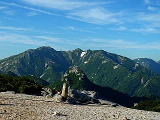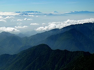 | 蓮華岳から見る後立山と北信の山々 | 蓮華岳から見る八ヶ岳と南アルプス、富士山 | 蓮華岳から船窪小屋からの道を振り返る |
