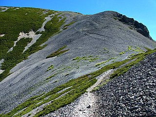 | 南岳山頂と三ツ岳 | 不動岳へと続く崩壊地の縁上の道 | 不動岳山頂 |
