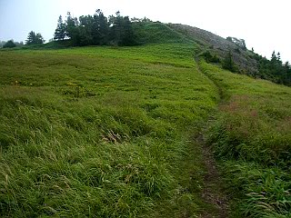 | 山行記 | ●最近始まったテレビドラマの撮影地がこの辺りだということもあり、久々にこの辺を訪れることにした。今回は妻と一緒なので、花見を兼ねて楽々歩けるこのコースとした。 ●山本小屋ふる里館横の駐車場に着くと、駐車場は既に半分以上が埋まっていた。まず、山本小屋ふる里館の売店を見た後その脇の登山口から出発する。緩やかな石まじりの道を、牛除けの柵をすり抜けながら登ると、呆気ない程すぐに牛伏山の山頂に着く。 ●牛伏山山頂には方位盤があるが、残念ながらガスに覆われ展望は得られなかった。小さな石を積み上げたケルンが多く、観光客の多さが想像できる。 ●牛伏山山頂から物見山方面に向かうと、牛伏山山頂直下から美ヶ原高原美術館のオブジェ群が現れ、そのフェンスの横に付けられた木道を下る。やがて美ヶ原高原美術館の入口に続く道と分かれて、車の往きかう舗装道を歩く。 ●舗装道をしばらく歩くと、レンゲツツジ群生地という看板があるのでそれに従い山道に入る。物見山山頂は、緩やかなアップダウンの後、岩屑の道を登り詰めたところにある。 ●物見山山頂は、あまり広くないが、やはり小石を積み上げたケルンが幾つかあり、三角点もある。ここへ来てガスが切れ始め、美ヶ原の牧場や、美ヶ原高原美術館のオブジェ群と牛伏山などが、ガスの切れ間から見えるようになってきた。 ●遠くの山々は見ることができなかったが、展望を楽しんだ後、牛伏山を経て山本小屋ふる里館まで戻った。山本小屋ふる里館では、搾りたての牛乳や山賊焼を食べたが、意外に美味しかった。 |