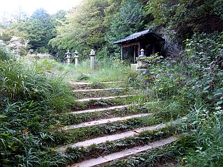 | トイレもある御上神社駐車場 | 表登山道入口 | 常夜灯のある妙見寺跡 |