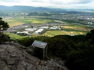 | 二越から見る琵琶湖、近江平野、比叡山 | 二越から見る三上山 | メタボが通るのは大変な割岩 |