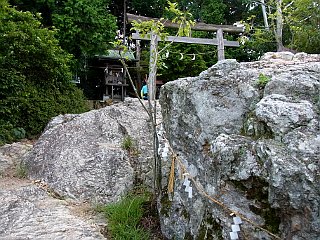 | 割岩を過ぎると大岩の上を登るようになる | 展望台からの眺め | 祠が祀られた三上山山頂 |