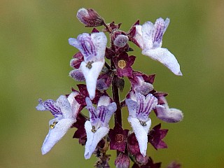 | 山行記 | ●旗頭山は、吉祥山の西の尾根上にあるピークで、山というより丘といった感じで、蛇紋岩の山なので高い木は育たず、蛇紋岩特有の植生がみられる山だ。東側はが採石場で削られ、麓には市営墓地があり、山全体が古墳群で覆われている。 ●登山口は、市営墓地の片隅にある。一旦林道を横断し緩やかな坂を登れば、10分程で山頂に立つことができる。山頂からは、吉祥山や本宮山を始め、三河や奥三河の山々、三河湾を見渡すことができる。 ●この日は、以前からムラサキセンブリが咲くということを聞いていたので、立ち寄ってみた。思っていたよりも植物の種類と数の多さに驚いた。しかし、行ったのが夕方近かったので、日陰になッたところが多く残念だったが、夕日とそれを透過するススキは綺麗だった。 ●そして翌日も、前日よりも少し早い時間に妻を連れて訪れた。 |