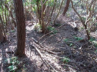 | ヤブっぽく荒れた大山トンネル北登山口 | 尾根との出合 | 大山トンネル南口への分岐 |