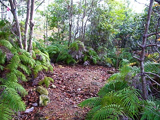 | 猛烈なシダをかき分けて辿り着く大展望の大岩 | ||