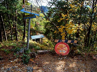 | 山行記 | ●国道151号線で旧鳳来町の名号の辺りを通ると、一際目立つ獣の顔のような大岩のピークを見る。それを獅子岩といい、それに登ることができるということを知ったのはついこの間のことだ。 ●登山口は、飯田線の柿平駅の近く。今回は、県民の森へ下りる周回コースをとるので、車は予め下山予定の県民の森駐車場に置いておくことにした。朝7時まで県民の森入口のゲートが閉まっているはずだが、この日は7時少し前には開いており、駐車場には既に数台の車が停まっていた。 ●まずは、舗装道を歩いて獅子岩登山口のある柿平駅を目指す。県民の森から三河槇原駅方面に戻る途中に、飯田線沿いに下りていく細い舗装道があり、「望月街道 柿平駅まで2km」という案内あるのでそれを進む。道は飯田線沿いに続き、やがて集落に入るが、そこが柿平の集落で、柿平駅はその外れにある。 ●登山口には何の案内も無いため、予めウェブで調べた案内に従い山道に入る。入口はヤブっぽく倒木などもあり、これが本当の登山道かと心配だが、すぐにヤブも少なくなり赤テープが現れるのでそれを辿って進む。 ●荒れ気味だが広く平坦な登山道は、堰堤を見る辺りからしだいに傾斜を増し、ジグザグに尾根を登るようになる。高度を上げるに従いコシダやウラジロなどのシダが道を覆い始める。ただでも登り難い、濡れて滑りやすい極端な急登は、頑固なシダが纏わりついて一層登りにくい。背後には、高土山や柿平の集落などを木の間越しに見ることができた。 ●何とかピークに着くと道は平坦になるが、シダの猛攻撃はしばらく続き、足を送るのも大変だ。やがてシダが気にならなくなる頃、広場に出る。案内はないがそこが獅子岩への分岐のようなので、獅子岩方面と思われる方面へ進む。 ●どうやらそれが正解だったようで、獅子岩の見える岩場に着いた。そこから獅子岩はすぐで、最後は腐った木の橋を通れば獅子岩だが、想像以上に腐っており、しかもかなり滑りやすいので、岩上を迂回して獅子岩に立った。 ●獅子岩上からの展望は思った以上で、隣の高土山を始め宇連山、棚山、弓張山、城山、遠くは本宮山、吉祥山から薄っすらと渥美半島の山々も見ることができ、樹林越しには三ツ瀬明神山の姿も確認できた。足下には名号の集落、三遠南信道などを箱庭のように俯瞰することができた。 ●獅子岩で大展望を楽しんだ後、先程の分岐の広場に戻ろうと、来た道を戻る。ところが、どこかで道を外したようで、なかなか分岐の広場が現れない。赤テープは所々にあるし、方向的にも大きく間違ってはいないはずなのだが。 ●そうしているうちに「K155」と書かれたコンクリート杭に取り付けられた見慣れたプレートを発見した。どうやらいつの間にか分岐を通り越して東尾根を歩いていたようだ。 ●岩の多い尾根道は、幾つかのアップダウンを繰り返し、プレートの番号も少しずつ多くなってくる。やがて防火水槽の見える坂を登りきると、東尾根コースに出る。プレート番号は「K180」で、来た方向は通行止めになっていた。 ●ここで初めて県民の森のハイキングコースと合流することになる。後は先日県民の森の尾根と宇連山を周回した時と同じシャクナゲ尾根を下りることになる。県民の森らしい岩と展望の尾根道を下りていくと、シャクナゲ尾根とシャクナゲ北尾根を分ける分岐に着く。ここは時間にも余裕があるので、前回通っていないシャクナゲ北尾根を下ることにした。 ●尾根に沿って緩やかに下る道は、やがてジグザグの急坂になり、下りきった所がおしどり池という、堰堤でせき止められた水溜りで、周囲の紅葉の木々が美しかった。 ●堰堤を少し下ると作業道に出る。この辺りの紅葉は丁度見ごろで、紅葉を目当てに訪れた家族連れや熟年カップルで溢れていた。風穴や雨樋(うひ)などを見物しながら作業道を下って行くと、キャンプファイヤー場でメインの作業道に合流し、程なく朝車を置いた県民の森駐車場に到着することができた。駐車場は、朝とはうってかわって満車状態で、駐車待ちの車がうろうろしている程だった。 |