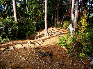 | 柿平駅近くにある獅子岩登山口 | ピークで急登は一段落する | 獅子岩分岐の広場 |